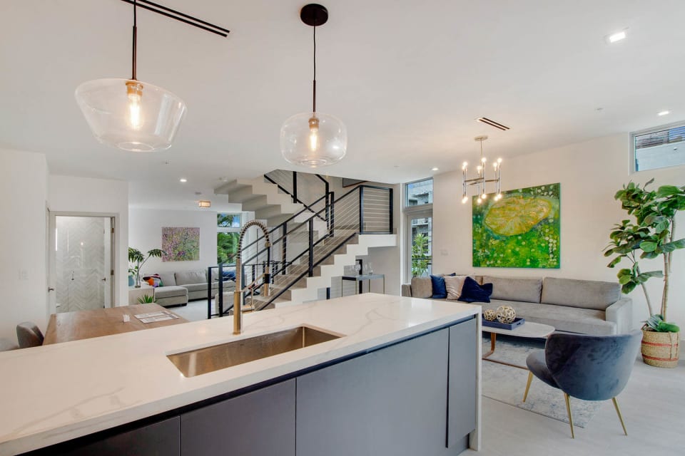 "Private two-story Mediterranean masterpiece with gorgeous gleaming travertine flooring. This newer construction townhouse has three bedrooms with generous balconies. Move right into the spacious layout with eat-in kitchen and open family, living and dining areas. Lushly landscaped backyard with s..."