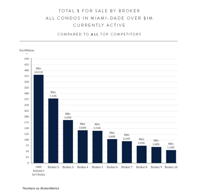 The partnership between ONE | Sotheby’s International Realty and the Jill Penman Group continues to be a match in excellence. Just as we report on the success of our team, we also like to report on the general performance statistics of ONE SIR. It was reported last week that ONE SIR leads the rest of their competition in market share for condominiums over $1 million in Miami-Dade County. This is a testament to strong relationships with sellers and a strong ability to place buyers in exceptional properties.