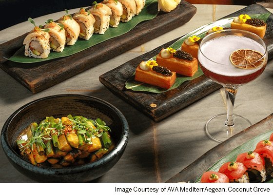 The countywide Palm Beach Food & Wine Festival’s delicious events include Yacht Rock: Welcome to the Dock Side “Bubbles & Bites” at PGA National Resort (December 11-14). Nestled beneath Coconut Grove’s famous tree canopy, the beautifully decorated AVA MediterrAegean is from the group behind Miami hotspots Mila and Casa Neos. The original owner of Hog Snappers in Tequesta opened local seafood-focused Hooked on Jupiter.