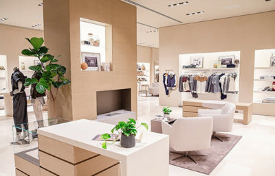 As Bal Harbour Shops prepares to add a greater assortment of stores to its third level like Le Labo fragrances, several of the center’s existing retailers are renovating and expanding. Brunello Cucinelli, a long-time favorite for its Italian fashion collections for men and women, opened a new 4,000-square-foot location with a fireplace and lounge. Born from cashmere sweaters, the privately-held company nestled in the Umbrian hillside has grown into a full line for exquisite ready to wear, outerwear, accessories and shoes. Fall shows ribbed knits, corduroy velvet and nappa leather in interesting pieces from cargo pants to reversible trench coats. Escada also revealed its new global concept store in nearly 2,000 square feet. Creative director Niall Sloan took inspiration from the locale’s Art Deco heritage and ocean blue backdrop yet also from faraway Tokyo by referencing the Nezu Museum’s ancient gold-leaf scripture.