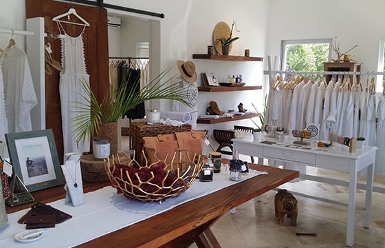 Retailer Fabiana Domiano is really a storyteller. Each item at her Drift Island Collective boutique in the Florida Keys has a meaningful connection. Fashions, home décor and fragrances are further linked through her eco-friendly mission. Local artist Derrick Crossland’s wavy chandelier and wall sculptures decorate her white, Mediterranean-inspired space—her heritage is Greek and Italian. Shoppers are treated to a tour with a little backstory. Resort line Sea Lily supports ocean conservation, while Coast’s clothing is made with natural fibers in Los Angeles. Other boho looks are from Island Tribe, Jen’s Pirate Booty and HMH, whose moccasins and sandals hail from Mexico City. Marine motifs adorn mugs and plates by ceramist Samantha McInnis of The Clay Caché. Domiano also creates jewelry with precious and organic materials in her onsite atelier.
