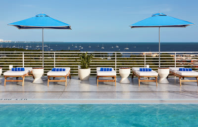 Ignazio and Maggio Cipriani, heirs of the famous hospitality family, have opened three Mr. C boutique hotels, but only their new Coconut Grove property boasts a rooftop pool with personal cabanas and Bellini Restaurant & Bar. Widespread views of Biscayne Bay and the historic neighborhood’s leafy canopy spurred the extra-special amenity. The waterside locale also suggested yacht-inspired décor by Martin Brudnizki Design Studio, the superstar firm behind Harry’s Bar in London, an outpost of Giuseppe Cipriani’s original in Venice that started the whole story. Brilliant blue and caramel hues, buttery soft leather and glossy timber panels feel like a ship save for their permanently docked status. Arquitectonica adds its signature Florida flair as well to the 100-room nautical concept with portholes and private balconies. Like an all-inclusive cruise, guests enjoy multiple restaurants and sitting areas including romantic gardens, a fitness center and a spa suite with a sauna. At Bellini Bar, order the namesake prosecco and white peach purée drink invented at Harry’s Bar in 1948, or its modern iteration with mandarin dubbed “The Mr. C.” Bellini Restaurant serves Italian and classic hotel cuisine. Salads (endive, pear and pecorino romano) and sandwiches, the Mr. C club being a no-brainer, are listed alongside diverse entrées from a Mediterranean-style branzino with tomatoes and olives to saffron-scented tagliatelle flavored with pancetta. Il Giardino recently launched for breakfast pastries, coffee, and sunset sips.