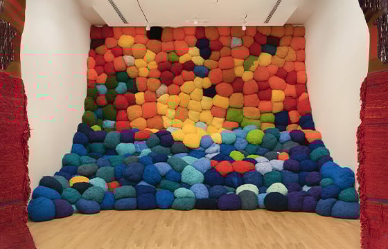 Textile artist Sheila Hicks has come a long way since she left her native Nebraska for a career in Paris. The octogenarian has exhibited at the Centre Pompidou in her adopted city, the High Line in New York and the Venice Biennale. Nearly a decade after her last solo retrospective in the U.S., Hicks is the focus of a major show at Miami Beach’s Bass museum through September 29. “Campo Abierto” (Open Field) stands out for its wide array of large-scale works on loan from institutions as well as for their formal, social and environmental aspects that have been rarely examined within her oeuvre.