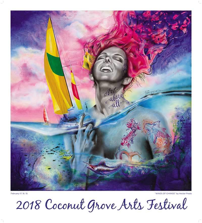 The festival is also know for it’s annual poster, and this years rendition is perhaps it’s most dynamic yet. Created by Artist Hector Prado, the poster titled “Winds of Change” was unveiled at a Jan. 18 reception at the Sonesta Coconut Grove Miami. Prado, born and raised in Colombia, states “the vision for this year’s poster depicts the winds of change that can move clouds and make the waves of the sea roll in a frenzy of exuberance and beauty,” according to a festival news release Previous festival posters have been created by artists including Guy Harvey, Maria Reyes Jones, Jacqueline Roch, Xavier Cortada, Clyde Butcher, Rick Garcia, Lisa Remeny and Romero Britto.